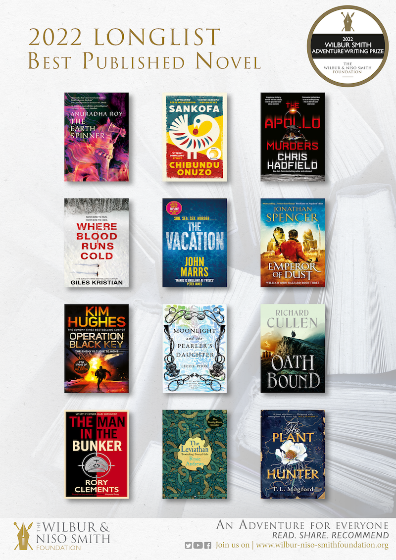 Twelve novels were selected for the annual Wilbur Smith Adventure Writing Prize, Best Published Novel, longlist. The Prize is open to writers of any nationality, writing in English.